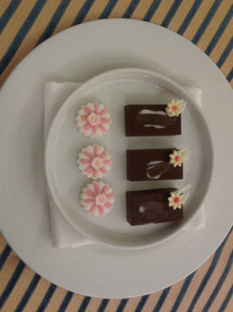 After the show we decided to run to the Lido deck to get some ice cream to cool down. And after an afternoon in the sun, we were worn out. We got back to our cabin and found some more goodies from the head chef, White and dark chocolates! Yum! Then we watched some TV, and then went to bed. I don’t even remember hearing the ship set sale at 11:00 pm. It was a full day…and tomorrow is Curacao!