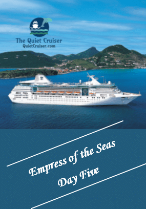 You never know what you’re going to get when you go on a cruise. We’ve had wonderful moments on ships, we’ve had moments we’d rather forget. I can safely say that this cruise on Royal Caribbean Empress of the Seas was one of the wonderful ones, with surprises around every corner. The crew was wonderful, always remembered our names, and always treated us with respect. We got to meet some of the management this cruise, and they were the best. The ship and cabins are small but we loved the little seating areas in nooks and crannies around the ship. I never felt that the ship was too crowded. The food was good, not spectacular, but we enjoyed it. And we met some wonderful people.