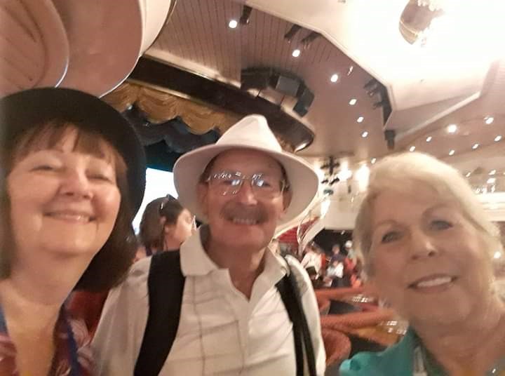 It was a very slow moving line to get off of the ship. Not nearly as efficient as embarking had been. The line went down through the theater and out the other side, and then finally out the door. We saw our friend, Pat, again and she took a selfie of all of us together. We ran into her a lot! She’s a very nice lady, wish we lived closer to her. We have made some very good friends while cruising over the years.