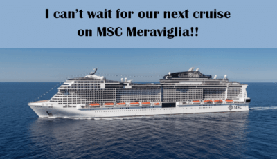 Our next cruise is coming! And we’re branching out to a brand new to us cruise line. We just paid off our next cruise on the MSC Meraviglia in full and bought our trip insurance. Now it’s time to start getting excited!