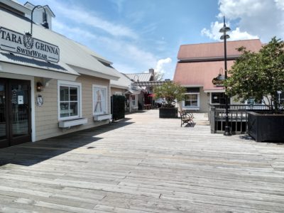We arrived at Myrtle Beach at around noon and decided to go to the Barefoot Landing shopping area for lunch.  We normally go to the Ultimate California Pizza restaurant.  However, when we got there we discovered that it was not going to open until Monday.  We walked around the shopping area to see what else we could find and there was only one restaurant open that we could see.  That was Blueberry’s Grill, and it had a lot of outdoor seating and was crowded.  The rest of Barefoot Landing had stores open, but was dead. There were barely any people walking around. We decided to leave there and look elsewhere.  This was not what we were looking for.