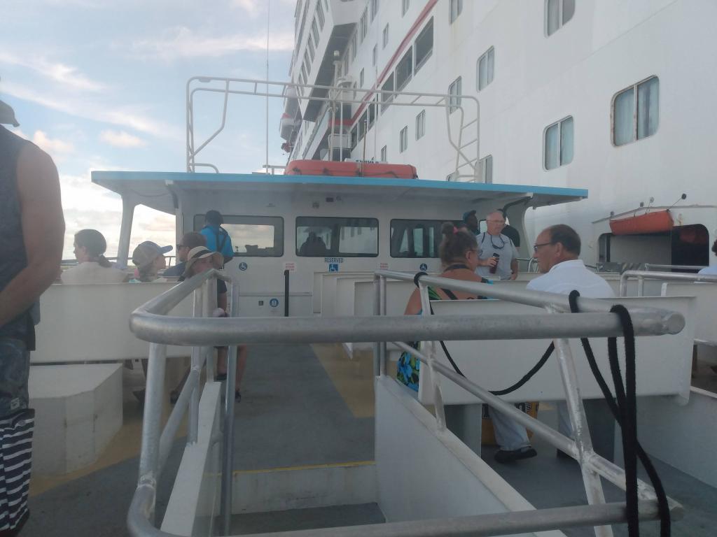 If you don’t know what tendering is, it’s when you take a ferry boat from the ship to an island. The boat comes out to the ship and you get onto it over a short gangway. Then it will take you for a ride, in Princess Cays, it took about seven minutes to get to the island. Then at the island you get off the boat via the gangway.