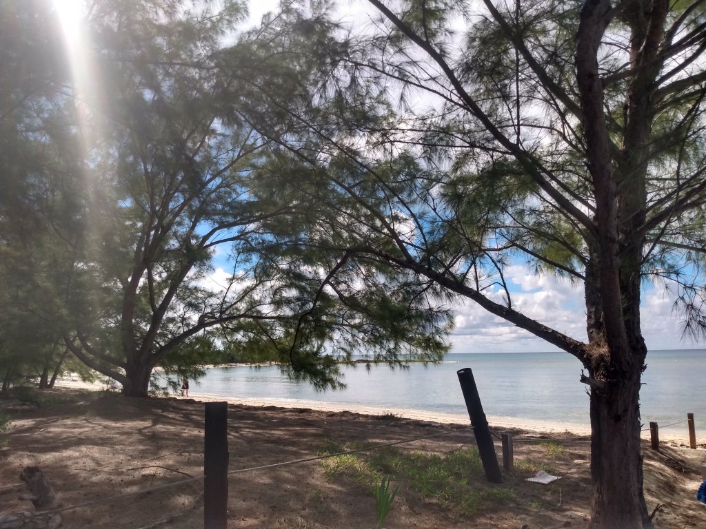 The beach on this end is littered with seaweed, but the water has got to be some of the clearest water that I’ve ever seen. I didn’t go out very deep at all, and there were fish swimming around my feet. We didn’t snorkel this time, but others were, and said that a ways out there were plenty of fish and even a turtle. The water is a bit rocky, so I’d recommend water shoes. The sand is very soft, and will cling to your feet, but there is a shower right near the restroom so you can wash it off.