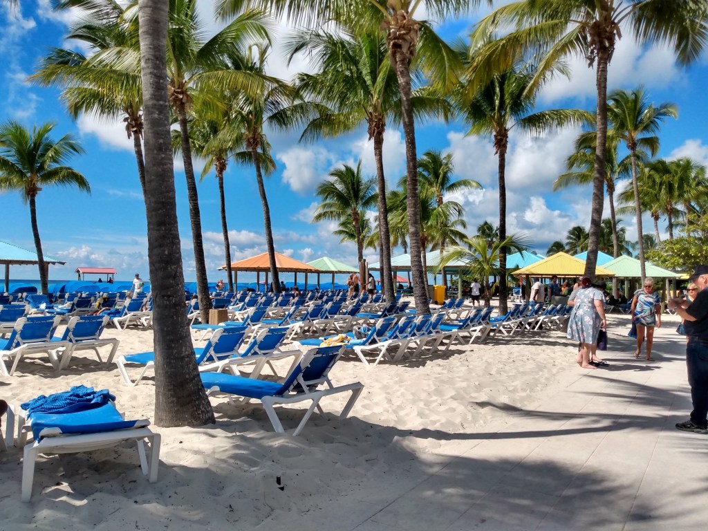 My husband’s and my thoughts on Princess Cays differed. He thought it was his favorite cruise line beach because of the more private less crowded area on the right side beach. For me, it was a good beach, but not my favorite. My favorite has to be Coco Cay because of the really nice pool, and the excellent buffet and restaurant choices on the beach. Princess Cays food doesn’t compare, and it was tiresome having to shew away the flies from the food. Also, cigarette butts all over made the beach feel dirty to me. But, the water was so nice and clear at Princess Cays, so that was a good thing.