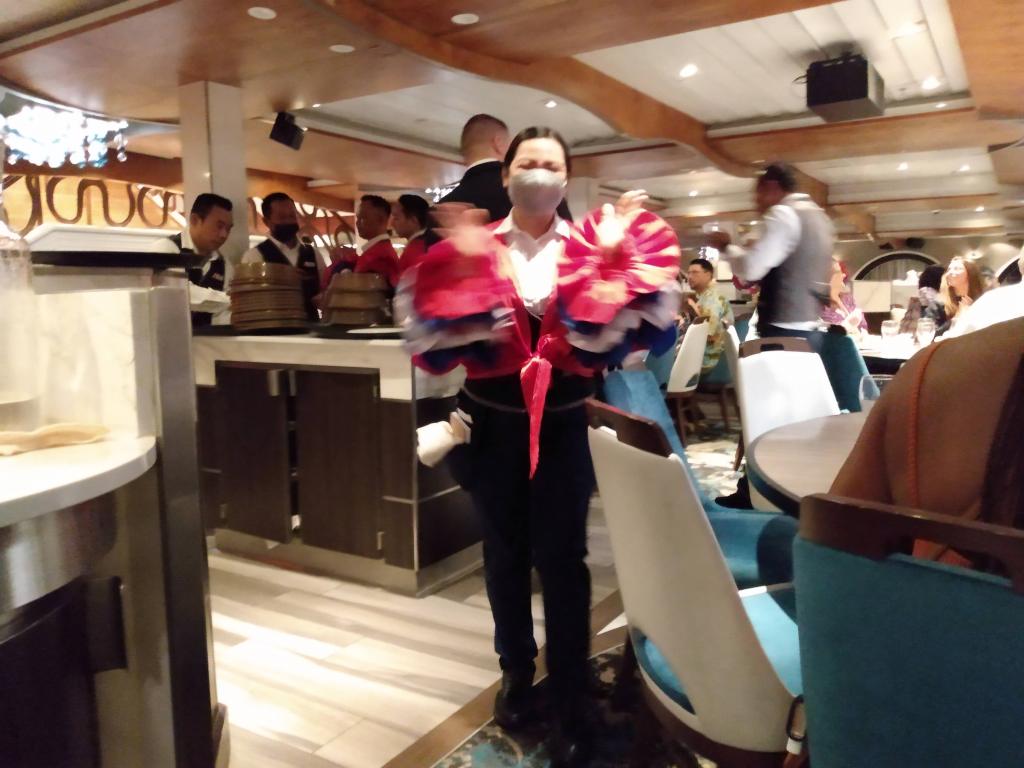 We did get a nice surprise at dinner. Our waiter, I Nyoman asked us if we’d sailed on the Sunshine before. We said yes, and he said that he’d waited on us on the Sunshine. It’s amazing that he remembered. Once he said it, I remembered him too. And I looked back in my blog for the Sunshine in 2018 and there is his picture. It’s a small world on a cruise line.