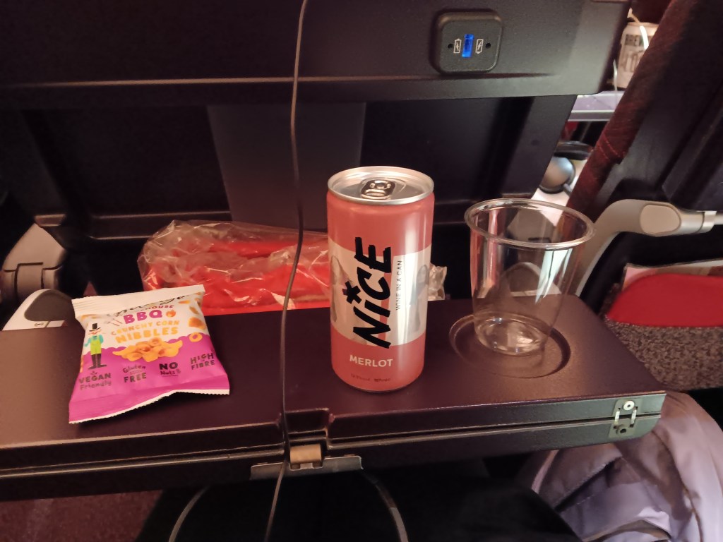 Coming back to Orlando we left about half an hour late from Heathrow. Being that this was a 9 hour + flight, we got fed much more often. It seemed like they were coming down the aisle every hour with something. We got a snack, a meal, drinks, a popsicle, and an afternoon tea service. The food was actually better on the flight back, I got BBQ chicken. You can get a can of wine, too. But it was very strong.