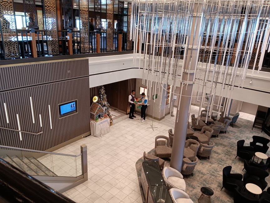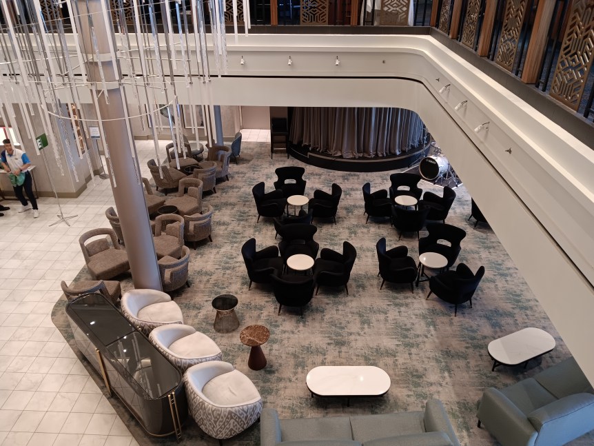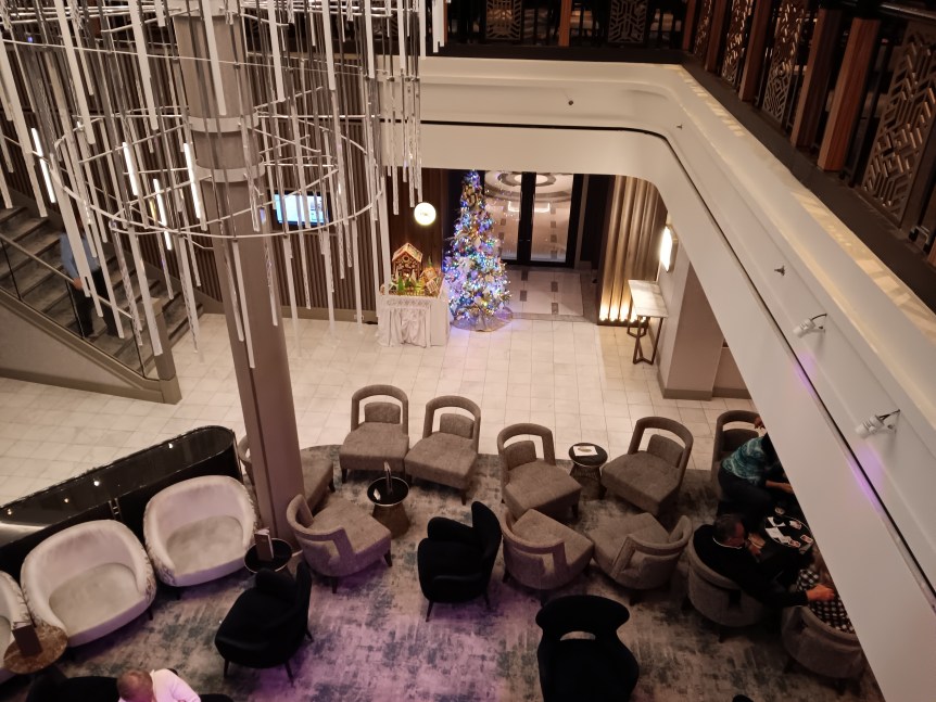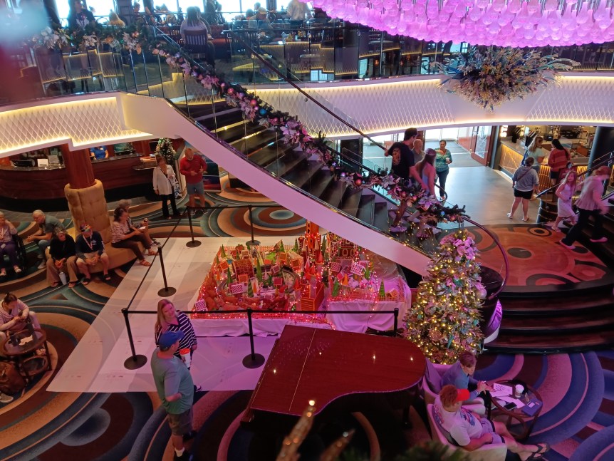 As usual, getting onto a ship the first day is chaos. Jacksonville has a very long gangway, and it’s sloped up when you get onto the ship. If you need help with that, let them know. I saw people being taken on wheelchairs. Then you have your cruise card scanned on deck and they will direct you which door to go into.