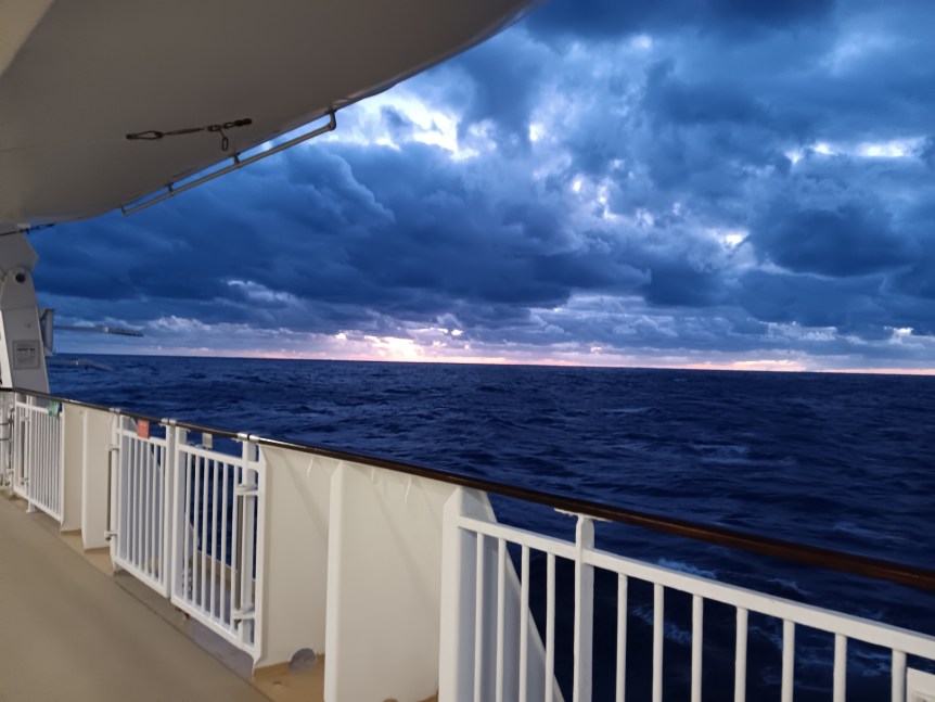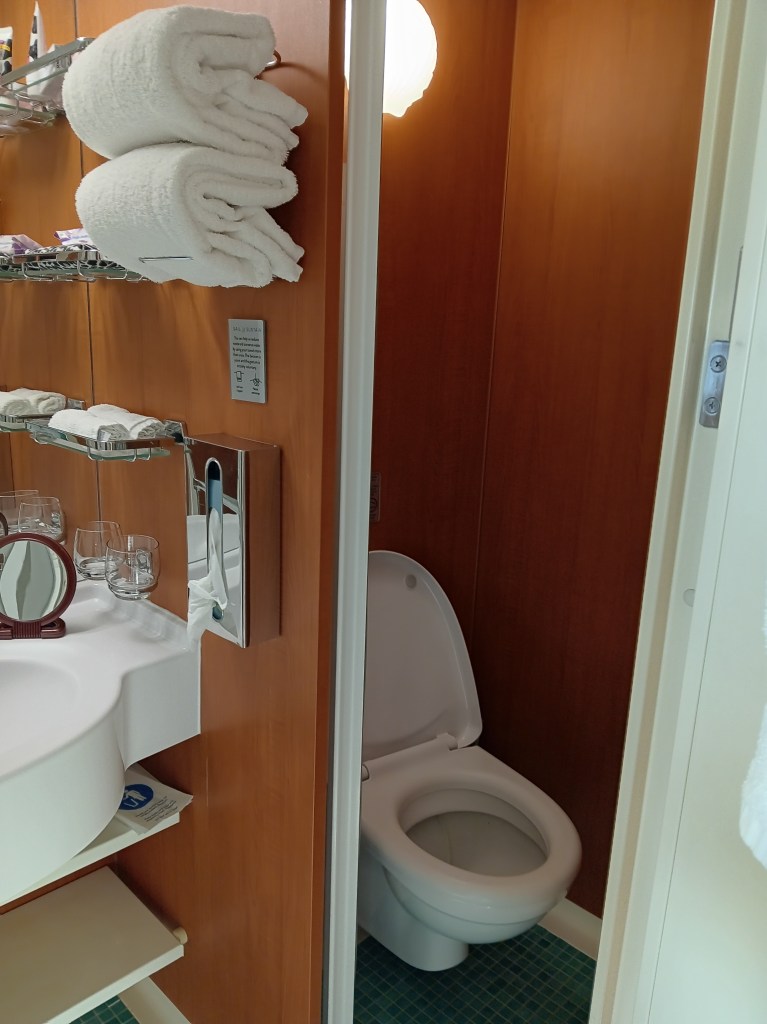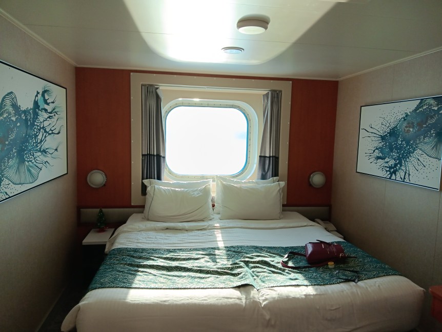 I’m glad that I booked an oceanview cabin, in retrospect. It was big enough for me as a solo traveler, and I was actually able to sit in the window area and watch the ocean go by. I think that maybe it would have been a bit chilly on a balcony on this cruise.