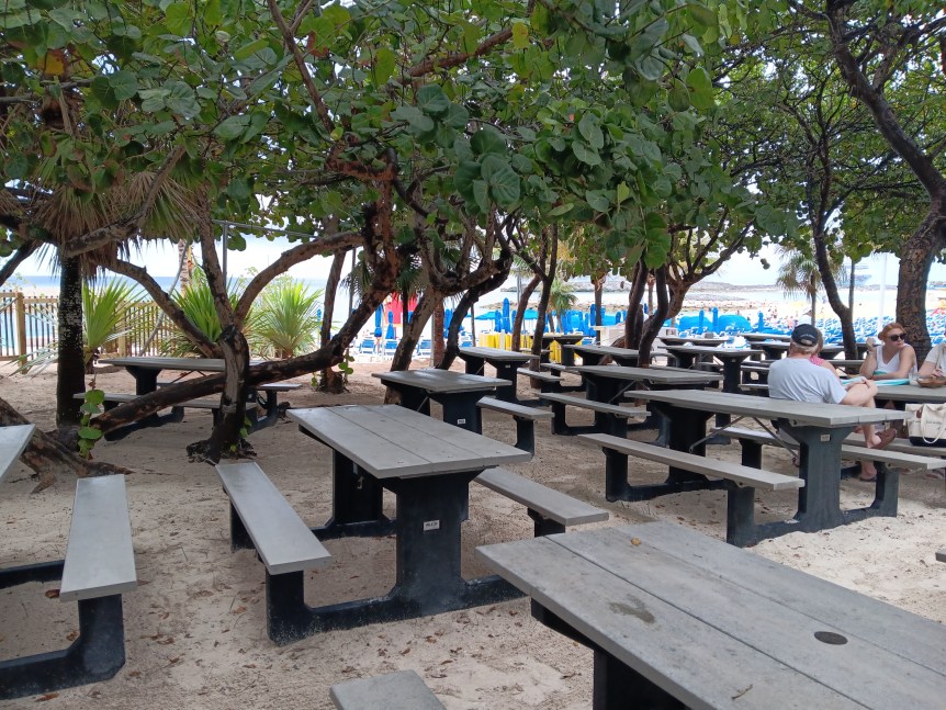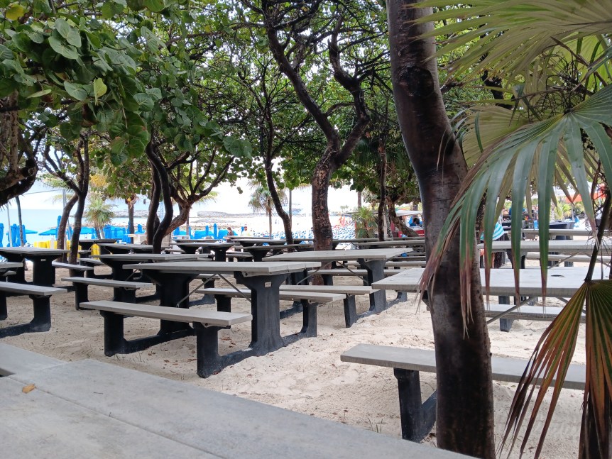 After that we went to Port Lacaya to shop. Port Lacaya was my very first port on my very first cruise, so I wanted to see it again. It seems a bit more run down than it did before, and the shopping is more overpriced than I remember. I did end up buying a magnet. There is some food at the shopping area, including conch fritters, but I considered it rather expensive for street food. I believe that they had an ice cream shop and a coffee shop also. There are restrooms. Last time they had a casino in the area, not sure if it’s still there or not.