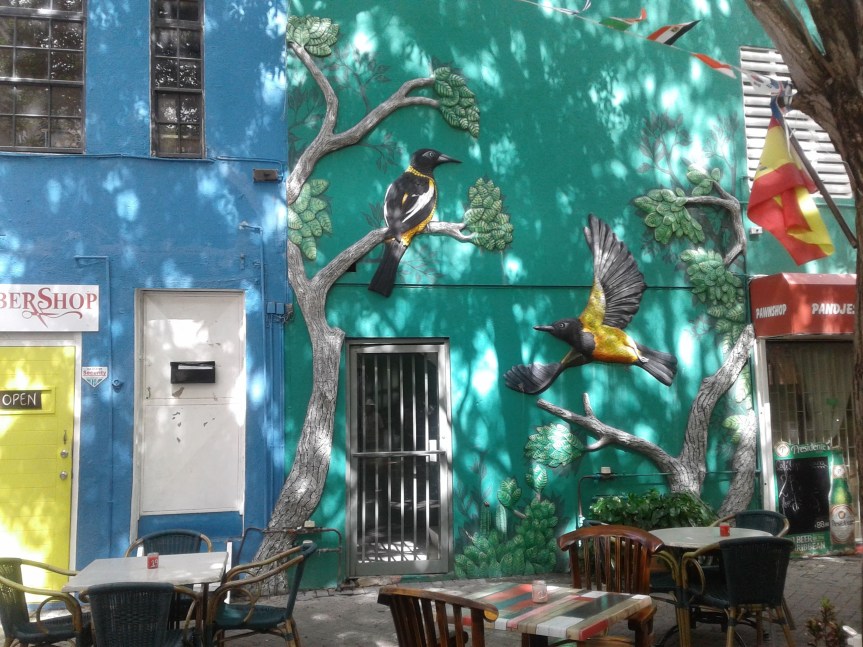 As you walk through the shopping area on the Punda side, take little detours and go through the alleyways to the shops inside. You’re going to find little secret areas of artwork all over the sides of the buildings. Beautiful! There are a lot of little squares open to foot traffic only that are full of surprises. You’ll find unique artwork everywhere.