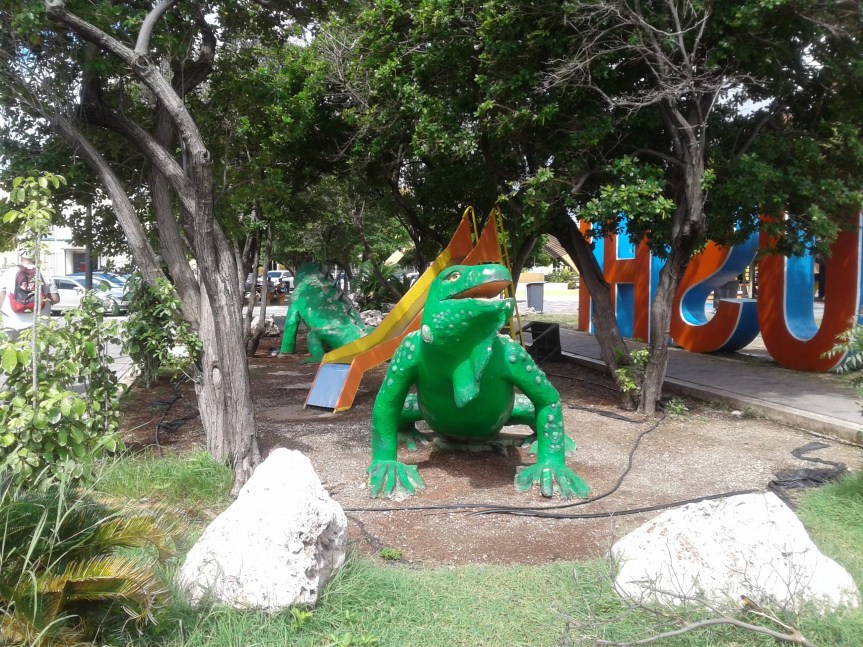 We then went down Breedestraat Punda past all of the shops. At the end of the shopping area was a small park called Wilhelmina Park with a small playground for the kids. There’s also an ice cream shop with a huge multicolored ice cream cone on top.
