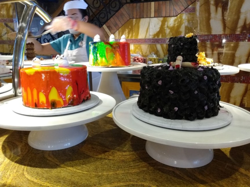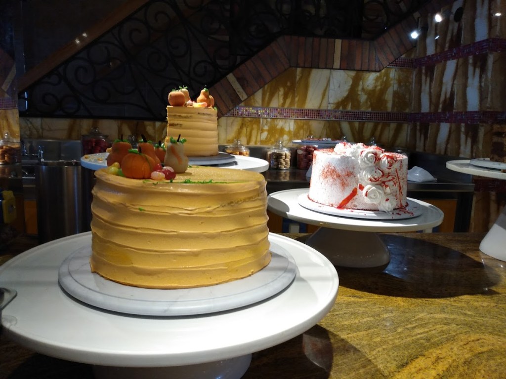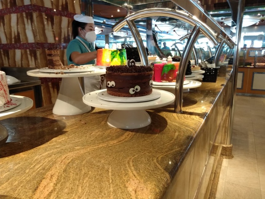 We headed to the Lido buffet to get a seat and put down our luggage. We couldn’t drop them off in the room till 1:30 pm. There were plenty of empty tables when we got there, it’s a large buffet. I ended up getting a salad, some mashed potatoes, and a tiny chicken pot pie. It was all good. Then for dessert I’m trying to cut sugar out from my diet so I got fruit. Wonder how long I’ll hold out before I eat my Chocolate Melting cake?