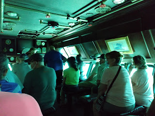 I wasn’t nervous at all, but the guy behind me was afraid, or just trying to scare his mother, because he kept talking about the boat sinking. They have fans on each end of the sub, and you can get a small glass of water if you need it. The boat has a bathroom but you have to go back up the steps to find it. I found that it was kind of hot at the beginning so I turned on my small fan. It seemed to cool down though after a while. Last time I was on a semi submersible I got seasick, so this time I took two Bonine before. I didn’t get sick at all this time.