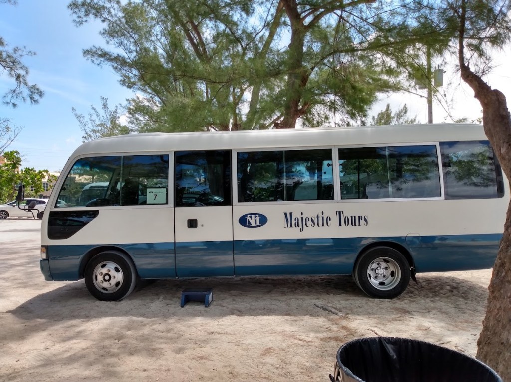 At about 10:35 am we got in line for our excursion. Luckily some clouds had rolled in and it was getting cooler with a breeze. It was a large group, and we were directed to three small busses. These busses don’t have bathrooms, but thankfully, they are nicely air conditioned. Our driver was Marvelette, I’m not sure of the spelling. She was very friendly and knowledgeable about the area. You do need masks as of April 2022.