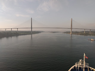 I knew that we were going to be getting to the canal early in the morning. I kept peeking out the window for any signs of dawn, and we finally got up at 7 am. We got dressed and skipped breakfast so that we could get a good viewing point.