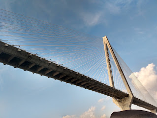 What I didn’t realize was how slowly the ship would be sailing going up to the canal. It seemed like it took forever. It kept getting hotter and hotter and the ship wasn’t much closer to the canal. We went under a new modern bridge and then could see a Holland America ship in front of us waiting to get into the canal.