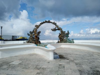 We walked through a few shops.  It was very hot and humid, but there was a breeze so it was bearable.  I bought a few small souvenirs.  We found a Mega Store and went in.  Upstairs there is a huge shopping area like a Super Walmart.  You can’t  take your bags in, you have to check them.  Everything is listed in Pesos though, so we didn’t stay. Later on our waiter told us that he had shopped there, and they did take American dollars, so if you want to shop there, take a converter.  It looked like they may have had some interesting items, and the waiter said they were cheap.  Also, along the route to the Mega Store, there is a small straw market.  We stopped, but if the prices are not marked, I won’t shop.  One of the funny things we saw was a carriage driver holding a bucket under his horse while it did its business.  Guess that’s how the streets stay clean.  Never thought about it before.
