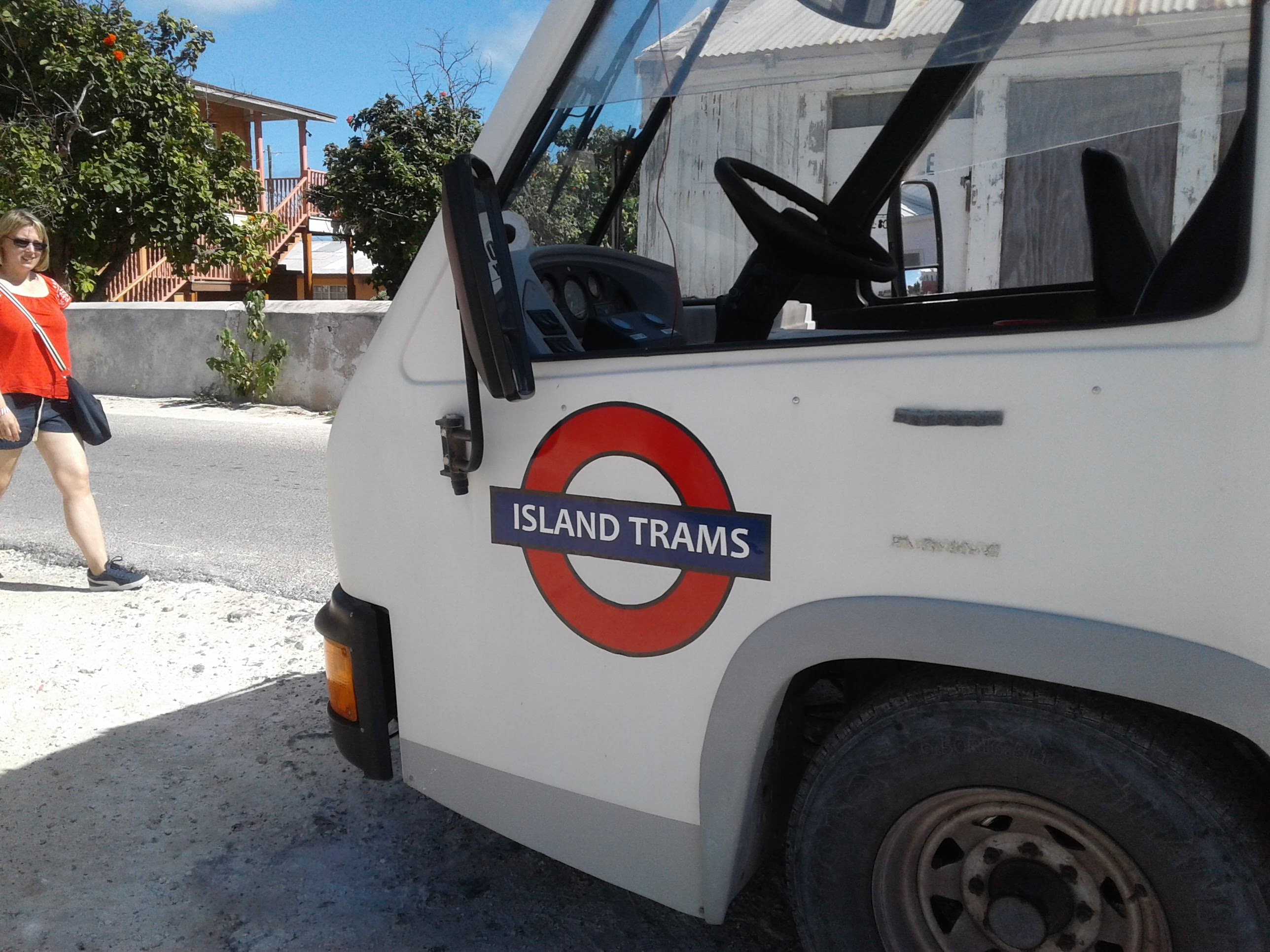 We had thought that we may rent a golf cart in Grand Turk.  We’ve been there four times and have never done more than shop and check out the beach.  I had wanted to check out Jack’s Shack and meet Topher the dog also.  We ended up paying $25 each for a local town tour. This tour was on a tram, not the one on the train.  The name of the tour group was Island Trams, and our guide was Tracy.  I’d highly recommend them, it was a great tour.  You buy your ticket on the beach to the left as you come down the pier.  You’ll find them under the yellow umbrella.