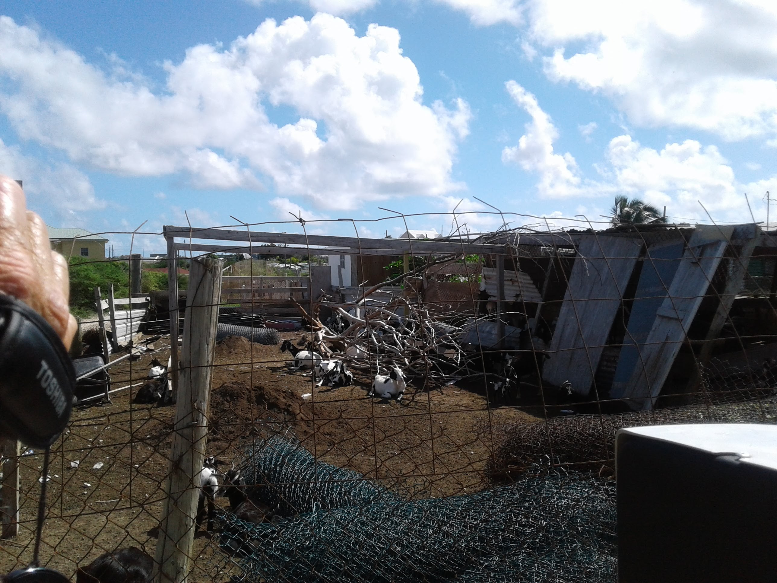 We drove through a neighborhood.  We were told that one of the families here at bought a male and female goat, and now there are goats all over the place.   Some of them were in a fenced yard, there was a brand new baby goat there.  The mama was still cleaning him off. Some were in the road.  And past that there were beautiful views of the ocean.  Tracy slowed the tram so we could get pictures.