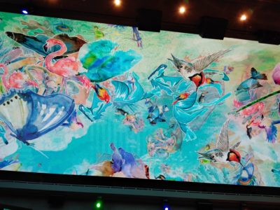 After the show we walked out into the Promenade area, found a place to stand away from the crowds, and watched the Dome show. Every so often every night the LED dome atop the Promenade deck does a light show, sort of like the show on Fremont Street in Las Vegas. There are different shows every night. I think that the Promenade dome is the most special part of the Meraviglia. This show was an aquarium with mermaids and fish. Really cool.