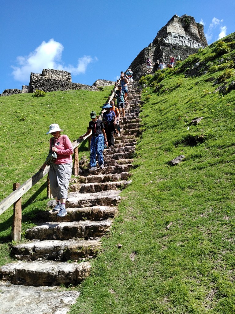 It was a two hour trip to Xunantunich through forested areas and small towns. I really don’t think that there are speed limits in Belize. The bus driver was really flying and passed many trucks even though it was only a two lane road. Some cruisers were killed in an auto accident on an excursion in Belize the week after we were there and I can believe it. I was a bit nervous on the bus.