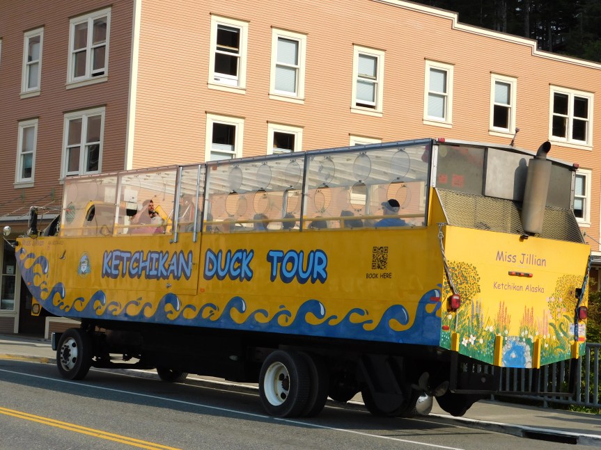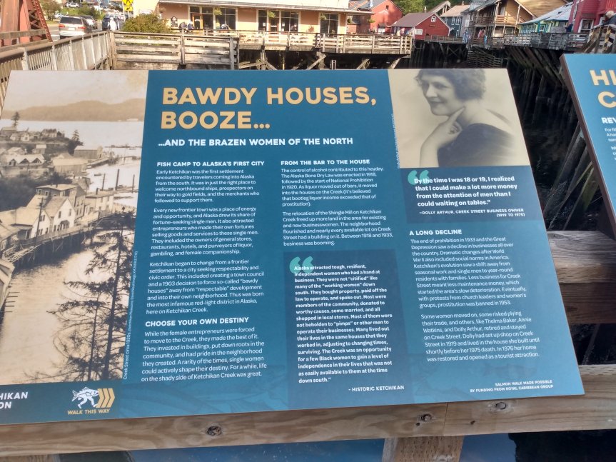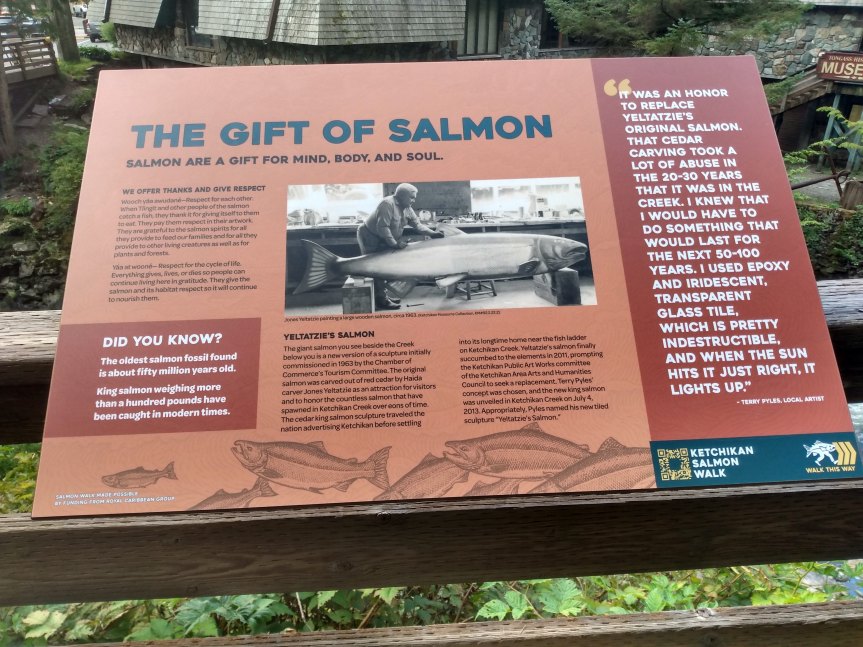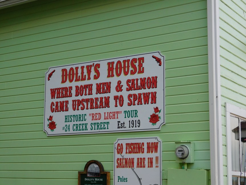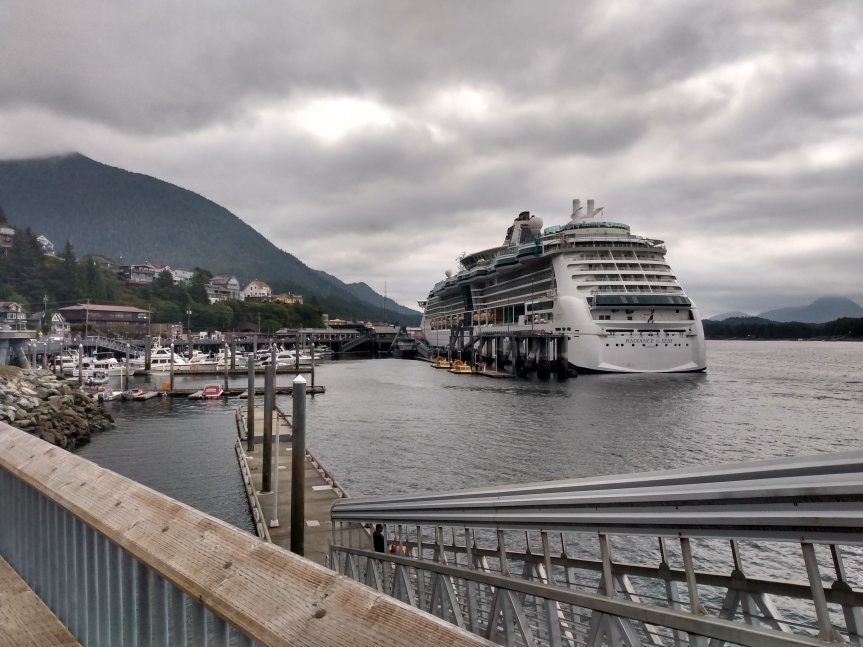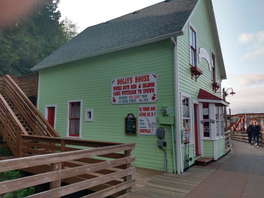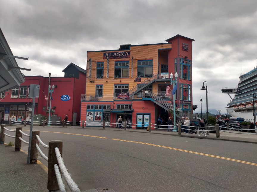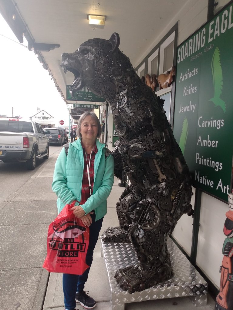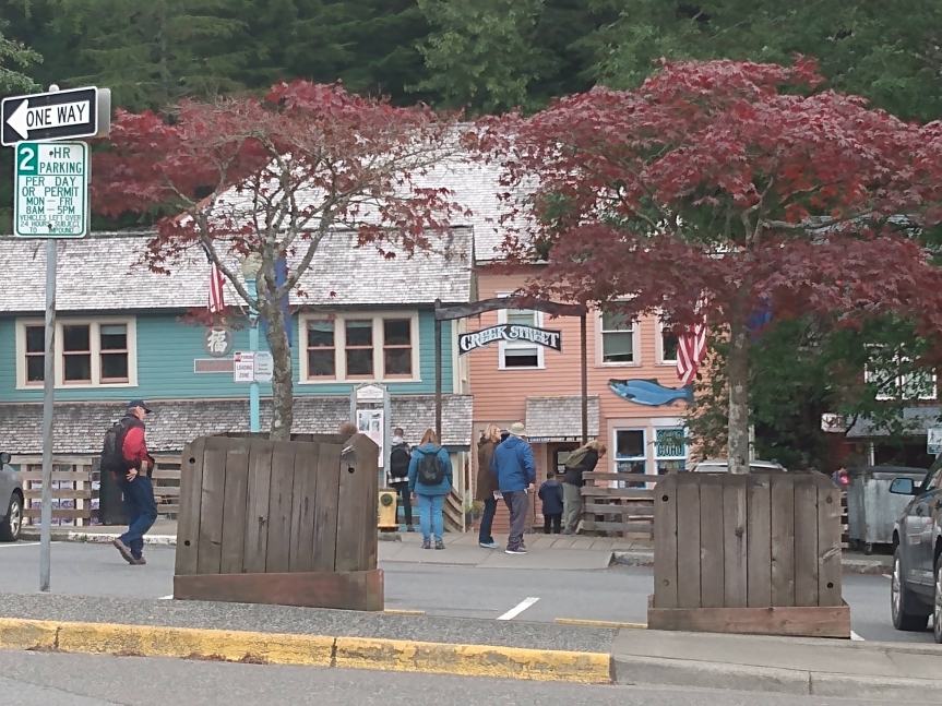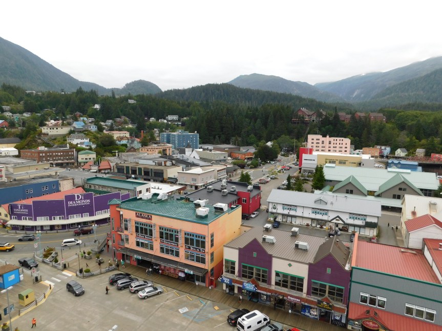 We’d been looking forward to Ketchikan for a while, so we ate an early breakfast and hopped into Ketchikan. And basically, you could hop because the ship ported right in the downtown area. I could watch the people shopping from my cabin window.