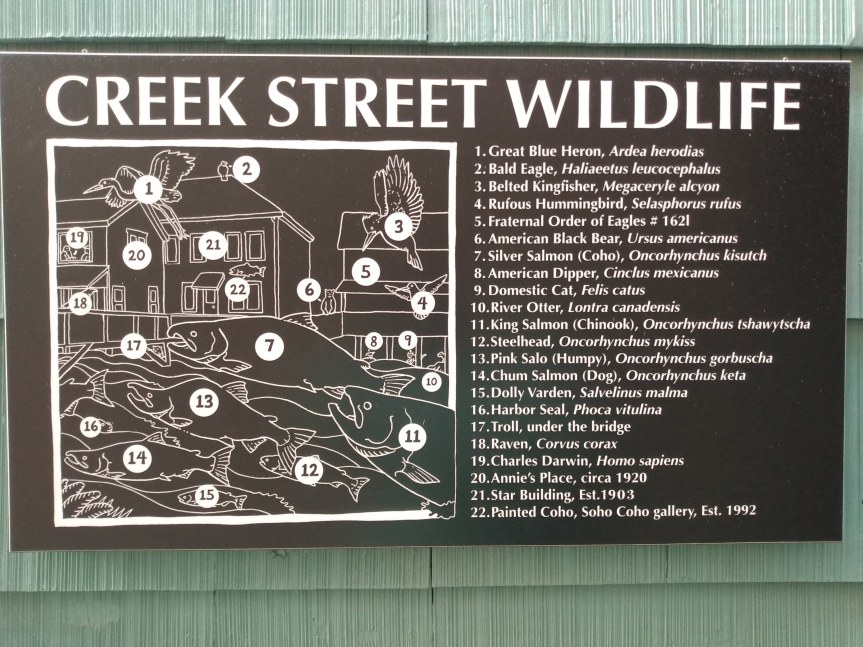Creek Street is very nice. You can walk up steps toward the salmon, and there are a number of shops to check out. It seemed like most were locally owned. Plus we saw seals and sea lions in the harbor looking for wayward salmon.