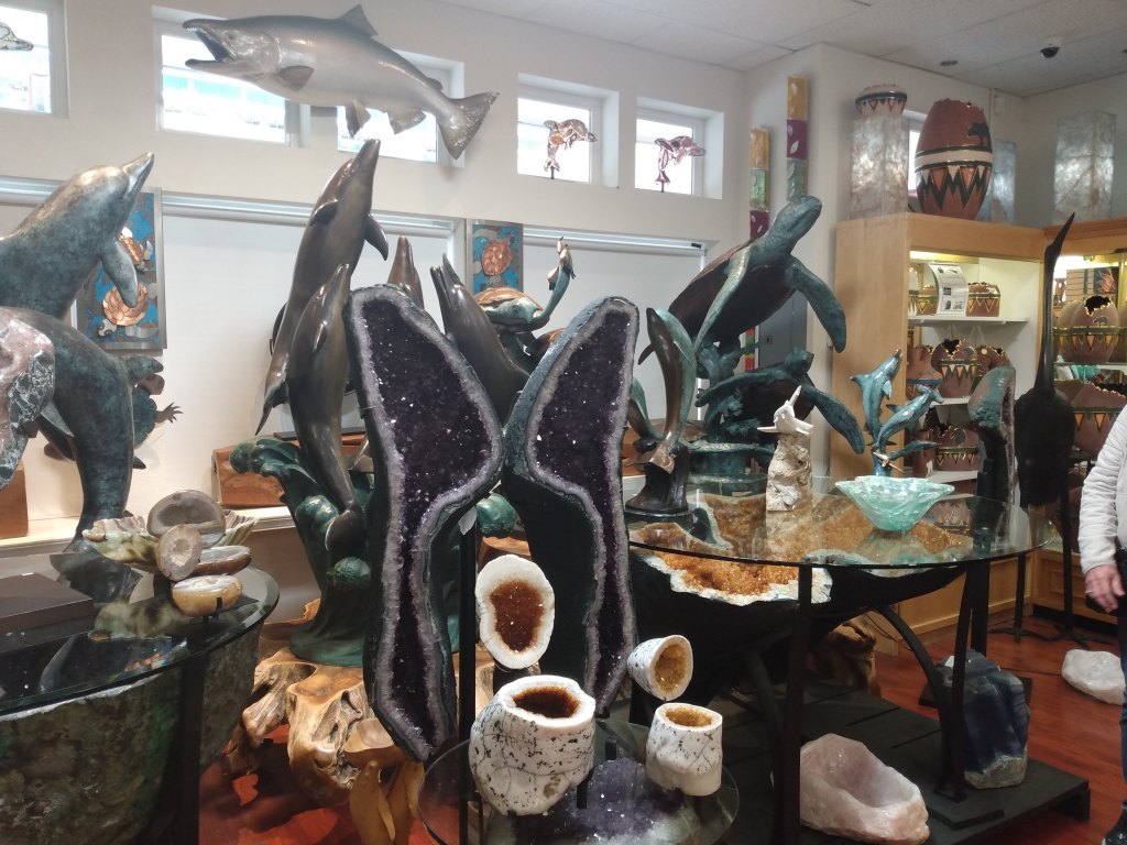 We walked around for quite a while, went back to the ship for lunch, then came out and walked some more. I have to say that we’ve had excellent weather for our cruise. Nothing to complain about and not a drop of rain. I have to recommend a store called Soaring Eagle. It’s the coolest store ever just to go in and look around. So many beautiful and unique items in the large store, and we even got a free arrowhead for our granddaughter. It’s like visiting a museum. They will ship your items for you if you find something that you can’t live without. But it seems like there is a no refund policy, so make sure you absolutely have to have it. We just looked around and enjoyed the items, no one pressured us, although we did talk to a salesman.